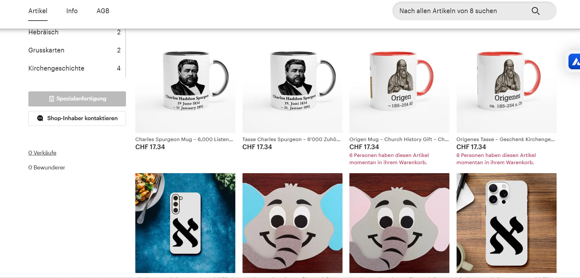 In meinem Etsy-Shop finden sich Produkte rund um die Anliegen von Bischwilcha. Es handelt sich sowohl um Print-on-demand-Produkte als auch um Einzelanfertigungen wie Kalligrafie und Grusskarten.